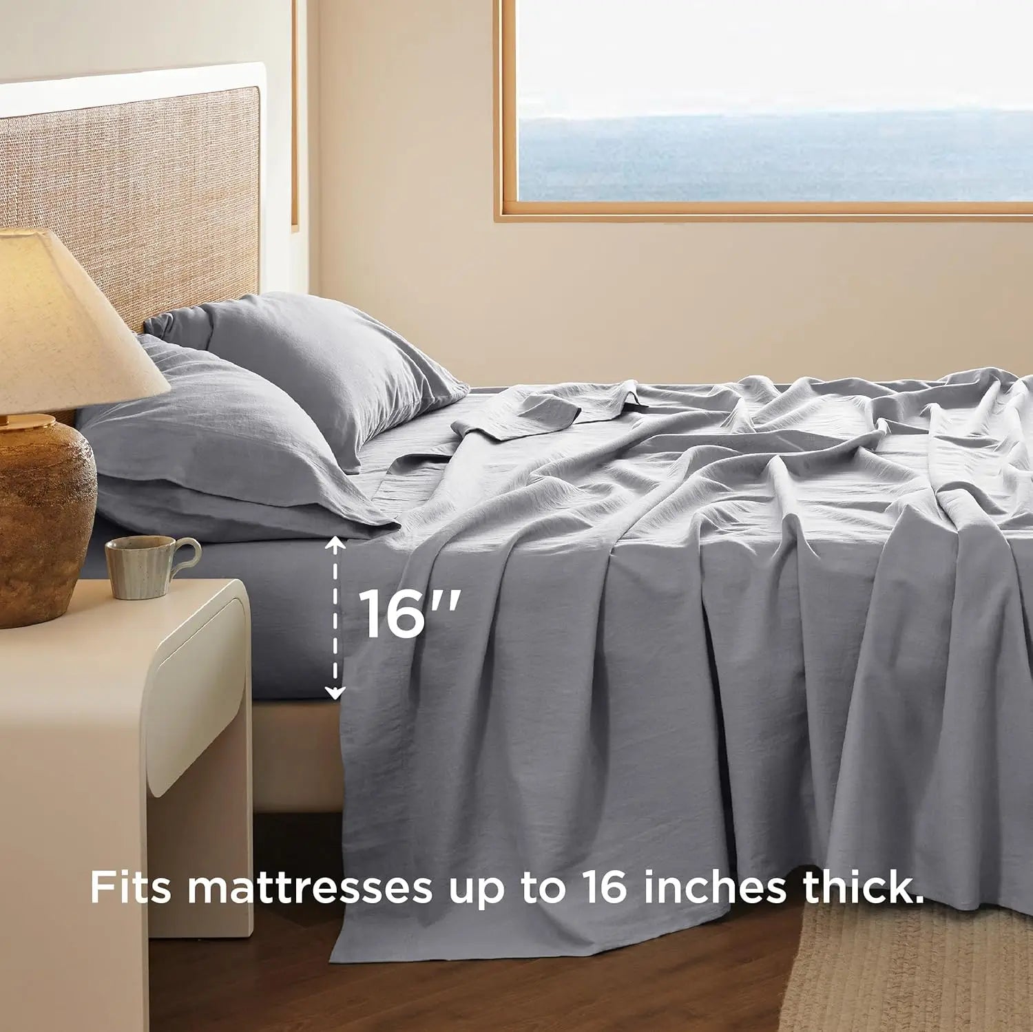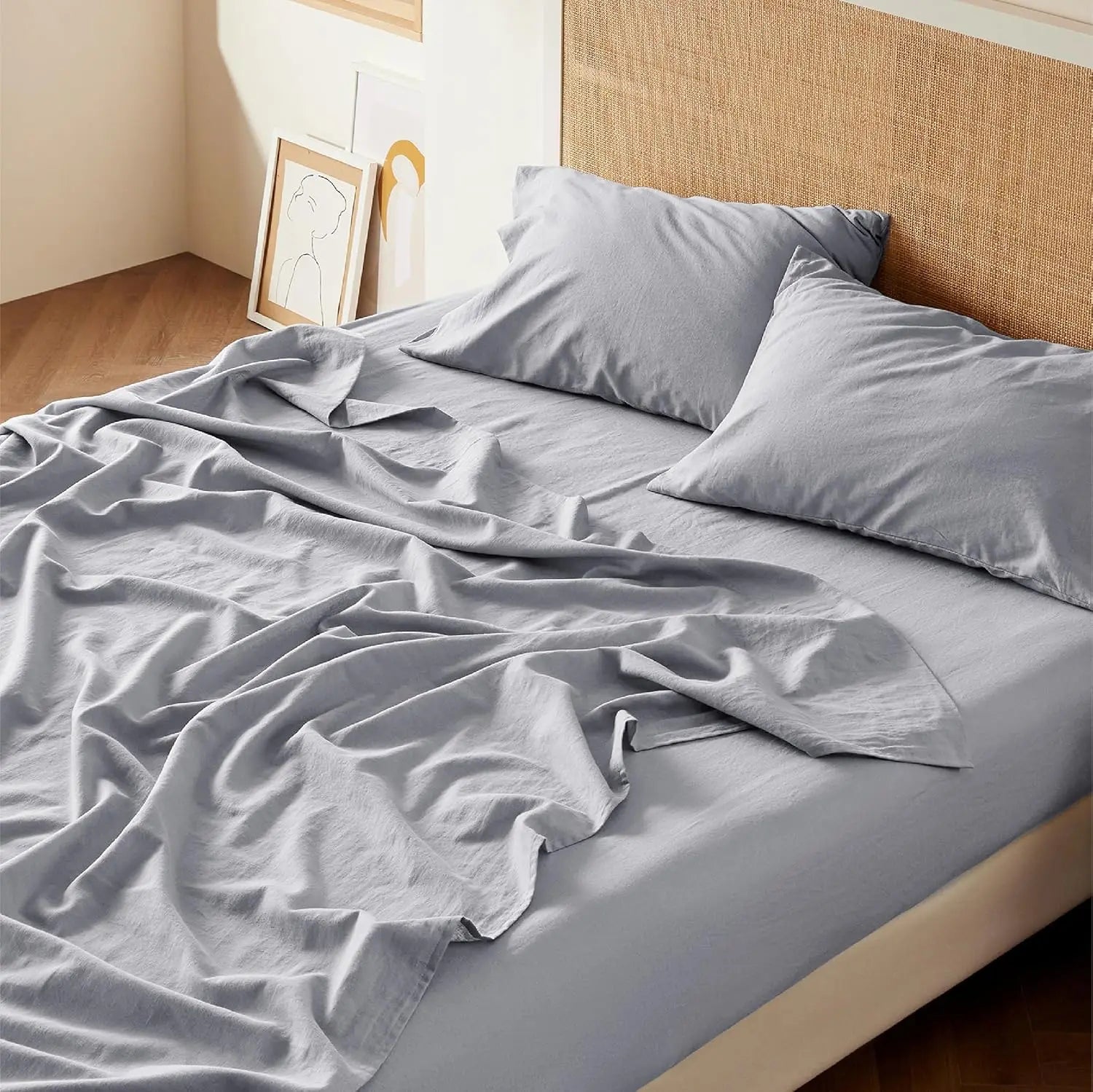 Bedsure Linen Sheets - Twin Linen Bed Sheet, 3 Pcs Twin Sheets Set Cotton Linen, Linen Cotton Blend Sheets for All Seasons