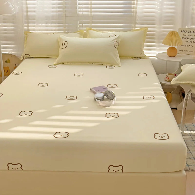 Bonenjoy Bed Sheets Single Size Mattress Protector Cartoon Style Bed Linen sabanas Skin-friendly Fitted Sheet (No Pillowcase)