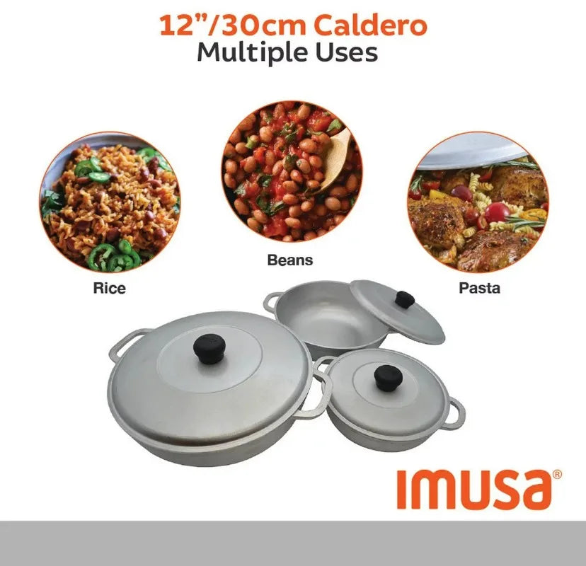 Imusa 3Pieces Colombian Cast Aluminum Caldero or Dutch Oven Set with Lid